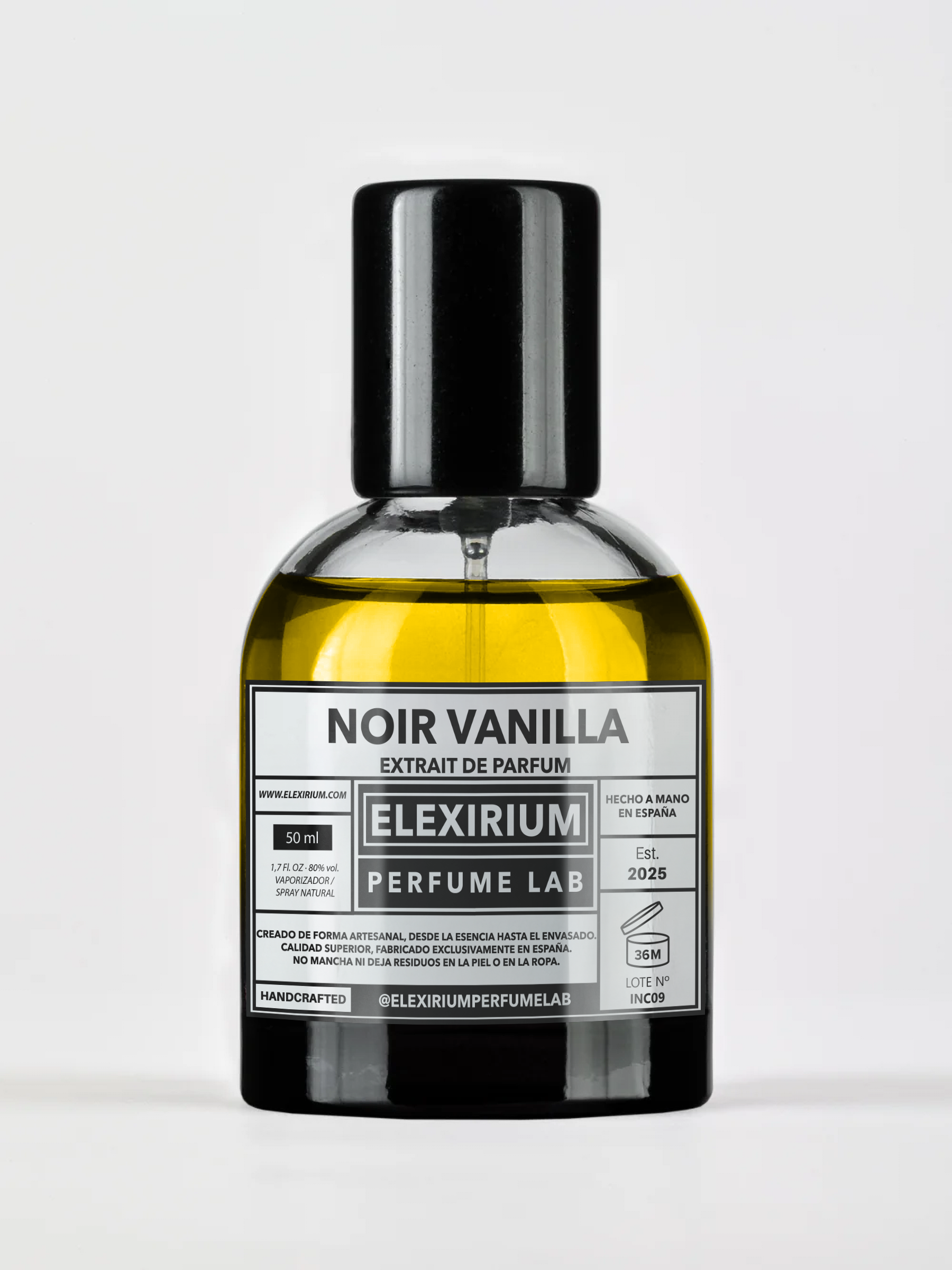 Todas nuestras fragancias se elaboran artesanalmente en lotes pequeños, con aceites de perfume de alta calidad y una concentración del 25 % para garantizar la máxima fijación y proyección.