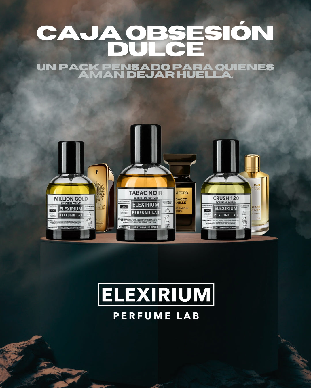 CAJA OBSESIÓN DULCE reúne algunas de las fragancias más golosas, cálidas y adictivas de ELEXIRIUM. Un pack perfecto para quienes buscan perfumes con mucha personalidad, ideales para noches, otoño/invierno o para los que disfrutan de aromas potentes todo el año.